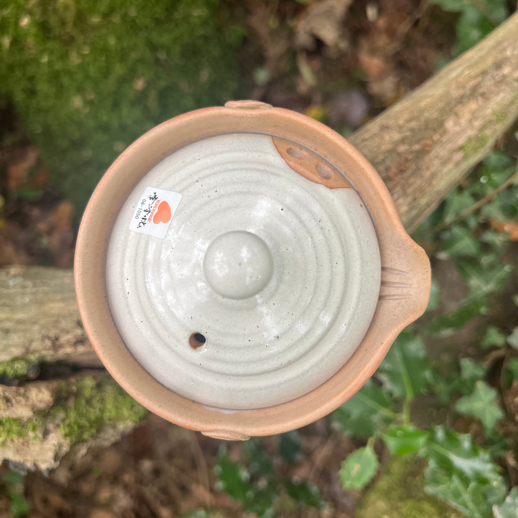 There are three possible forms of Tokoname teapots, categorized according to where the handle is sited. A yokode kyusu has it on the side, an ushirode kyusu has it at the back and an uwade kyusu has a handle on the top. The most typical modern type is the yokode kyusu, which is the one we use at Comins. This style can be traced back to the end of the Song dynasty (960–1279) in China for the preparation of powdered tea. It has been adapted perfectly over time to meet Japanese needs, incorporating a fine mesh to prevent the fine particles of tea from coming out. Each one is balanced according to the potter’s preferences. Customers often comment how simple yet effective their design is, not knowing that the concept has not really changed in 900 years!