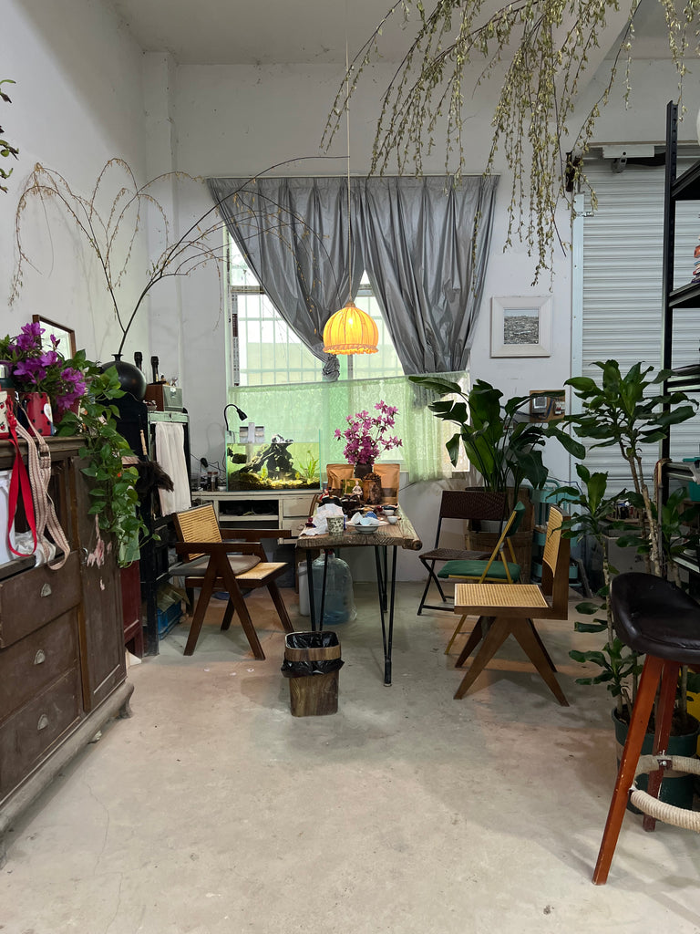 Lu Dan Cheng is a very peaceful person living by the river enjoying making pottery. He shares how he enjoys pottery because in his daily life he stays in his shop, makes his designs and lives his peaceful life in a space he can share with his friends. 'I enjoy this type of working life' he shares and sitting in his studio we can see why. We are very excited to be able to bring his unique works to Comins and are sure you will fall in love with every piece just as we have!