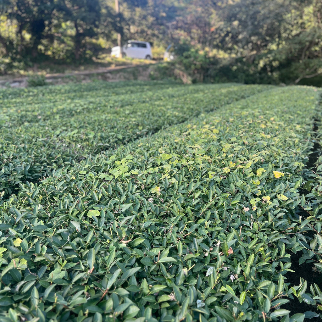 their 4.5 hectares of tea farm in Yame, Fukuoka. They are part of a group of 6